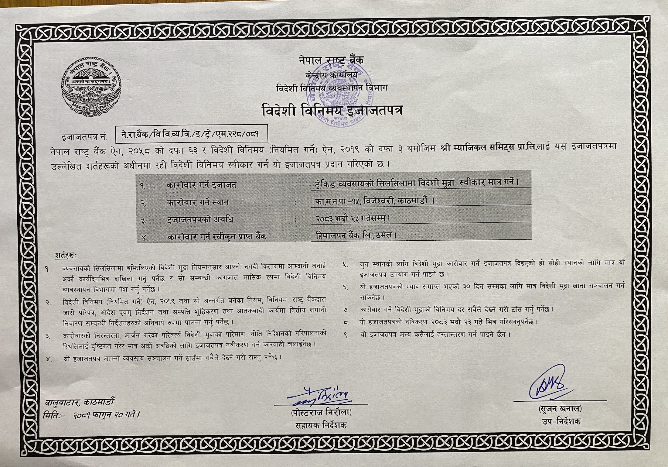 Magical Summits Pvt. Ltd. is a well-known government licensed trekking and touring company in Nepal. Please see the government licenses and authorizations that Magical Summits holds:
